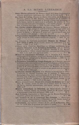 1911. first edition. Paris: Emile Larose. 1 volume. 340 pages. 1 folding map. 8vo (145x225).