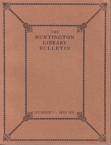 The Huntington Library Bulletin [Number 1 (May 1931) and Number 2 (November 1931)]