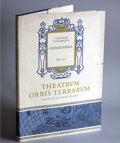1511年のヴェニス版からの複製版。プトレマイオスは、2世紀に活躍したギリシアの天文・地理学者で、ヒッパルコスの見解をもとに、地球は球形で、宇宙の中心に静止し、太陽、月、その他の恒星は、楕円軌道を描いて、地球の中心を回転すると考えた。この天動説は、コペルニクスが出現するまでは、不動の権威と考えられていた。この著作は、プトレマイオスが、地球上の緯度、経度を決定することを試みた資料である。この1511年版は、ベルナルド・シルヴァーノによって校訂されている。大型本。