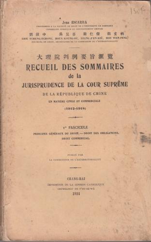 de la Republique de Chine en Matiere Civil et Commerciale (1912-1918)